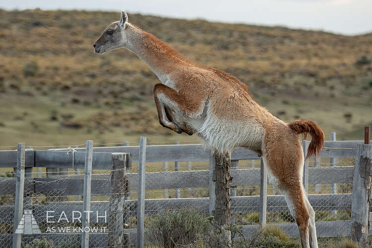 Guanaco saltando cerca