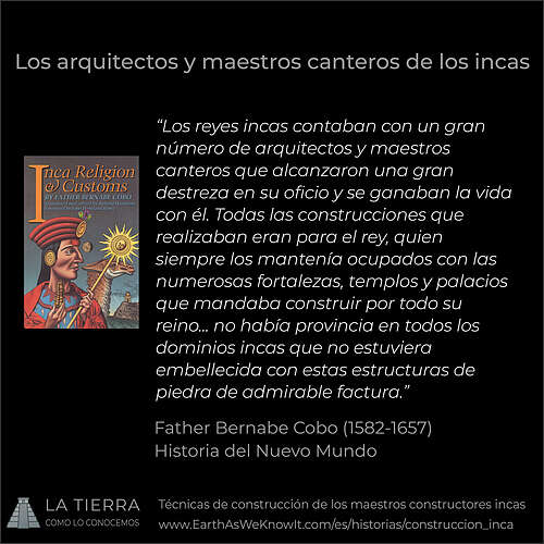 Una cita del cronista español Padre Benabe Cobo, que describe a los arquitectos y maestros canteros de los incas.