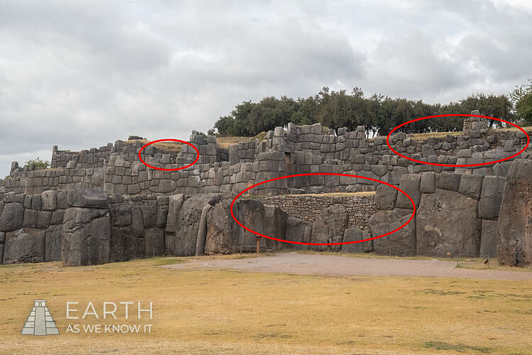 Esta recreación de una antigua fotografía histórica de Sacsayhuamán, tomada a principios del siglo XX, muestra que posteriormente se añadieron los muros de contención superiores. Estas fotos del antes y el después desmienten la teoría de la historia alternativa que afirma que los incas solo construyeron esos muros superiores.