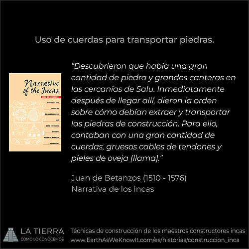 Una cita del cronista Juan de Betanzos, que describe el uso de cuerdas para arrastrar piedras durante la construcción inca.