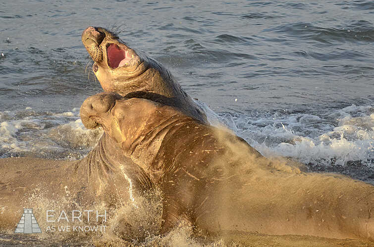 The battles normally occur after another male attempts to mate with a female that a dominant male has claimed as his own. Often simply rising up and bellowing into the air will be enough of a threat to scare off the challenger, particularly when the hierarchy has already been established in previous fights. Otherwise, what follows can be brutal, thousands of pounds of bubbler slamming against each other, trying to rip into each other's flesh with their powerful jaws, with the weaker of the two being forced back into the water.