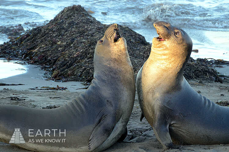 Juvenile Elephant Seals Play Fighting