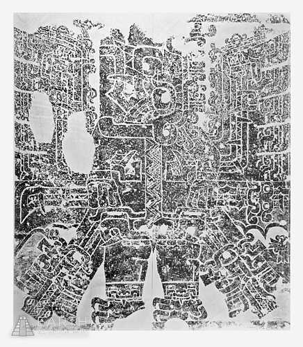 A sketch of the right column steele Chavín De Huántar, Peru. Thought by Rowe to represent eagle diety attendents of the Staff God.Image credit: John Howland Rowe, Chavin art: an inquiry into its form and meaning (1962).