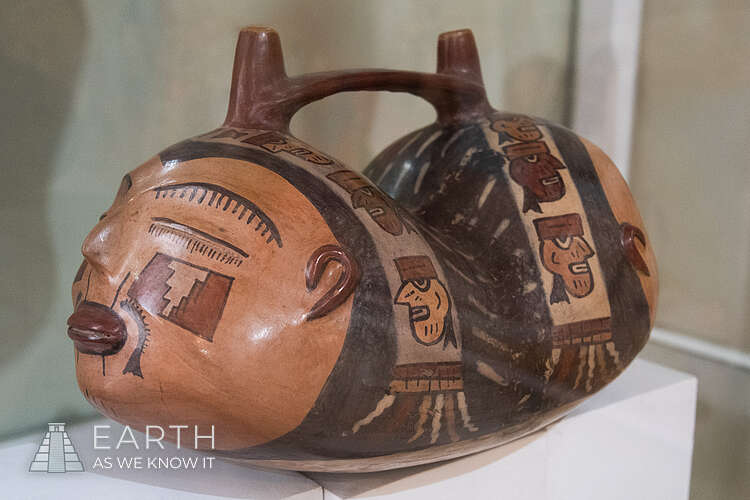 Double Trophy Head Ceramic Located at Museo Carlos Dreyer, Puno, Peru. Tags: Archeology Ceramics Nazca Peru South America