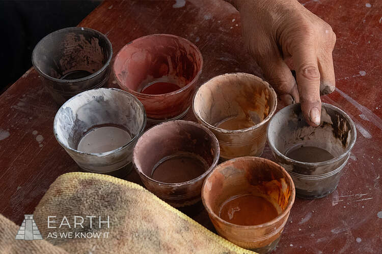 Andrés Rolando Calle Benavides "TOBI" demonstrates the traditional technique of creating polychrome paints from natural minerals, used by the ancient Nazca culture for their elaborately painted ceramics.